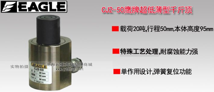 CJ2-50薄型液壓千斤頂,常與鷹牌APS鋁制手動(dòng)液壓泵、HC1-2高壓軟管配套使用